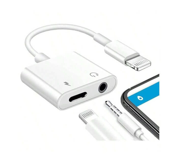 وصلة ايفون محول جاك لرأس سماعات الصوت من Lightning إلى 3.5 ملم متوافق مع iPhone، ومحول شاحن 2 في 1 ومحول تقسيم الصوت AUX وافق