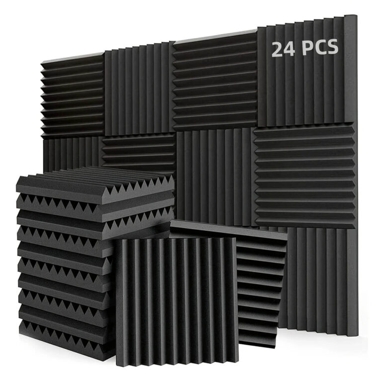 فوم عزل الصوت 24 قطعة من ألواح العزل الصوتي عالية الكثافة السوداء، 30.48×30.48×2.54 سم مقاومة للاشتعال، ماصة للصوت تقلل الضوض