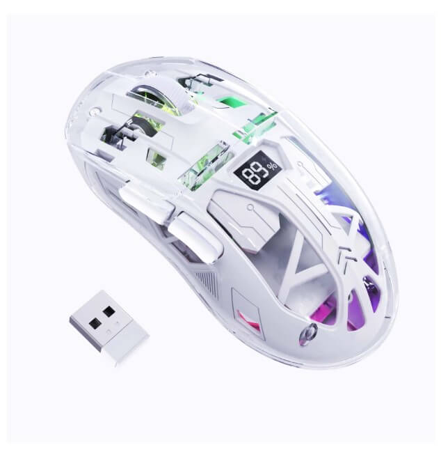 ماوس جيمنج احترافي ماوس ألعاب لاسلكي شفاف مع عرض مستوى البطارية من FREEWOLF X ZIYOU LANG A2 ، بلوتوث/2.4 جيجا هرتز لأجهزة الك