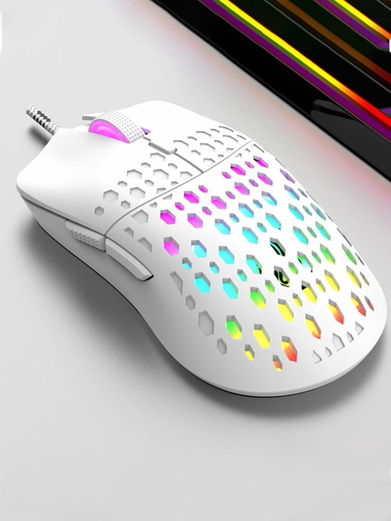 ماوس جيمنج خفيف ماوس ألعاب مسلك أبيض مضيء بالليد للكمبيوتر اللوحي والكمبيوتر المحمول والمكتب