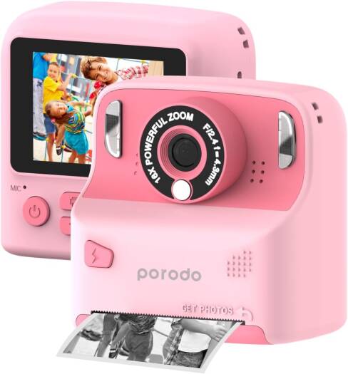 كاميرا اطفال طباعة فورية بورودو للأطفال بسعة 10000 مللي أمبير/ساعة بدقة شاشة 320 × 240، بدون حبر بدقة 12 ميجابكسل