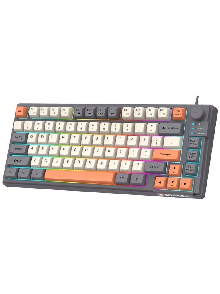 كيبورد جيمنج لوحة مفاتيح للألعاب بنسبة 85%، مفاتيح دوارة بغشاء رقيق خفيف RGB، واجهة USB، لوحة مفاتيح سلكية باللون الأبيض والأ