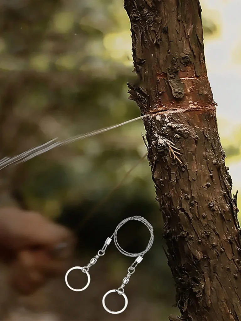 منشار سلكي للتخييم والبقاء محمول قطعة واحدة، مع شفرة منحنية، سلسلة، حبل وجيب للمغامرات الخارجية