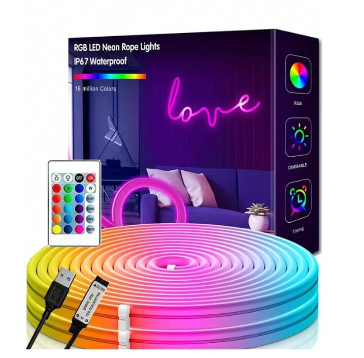 شريط اضاءة نيون طول 3 متر شريط إضاءة Rgbic مقاوم للماء بمنفذ USB مع التحكم في التطبيق، يتفاعل الموسيقى، تزيين الحائط،