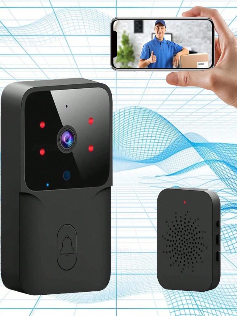 جرس الباب ذكي بالتحكم عن بعد مع كاميرا وميكرفون كاميرا أمان بزاوية واسعة عالية الوضوح و بتصوير ليلي بأشعة تحت الحمراء،