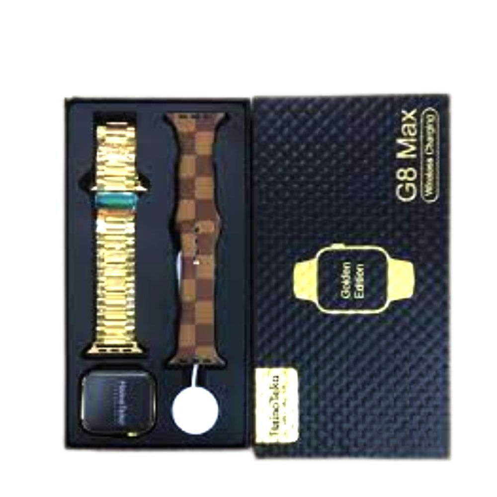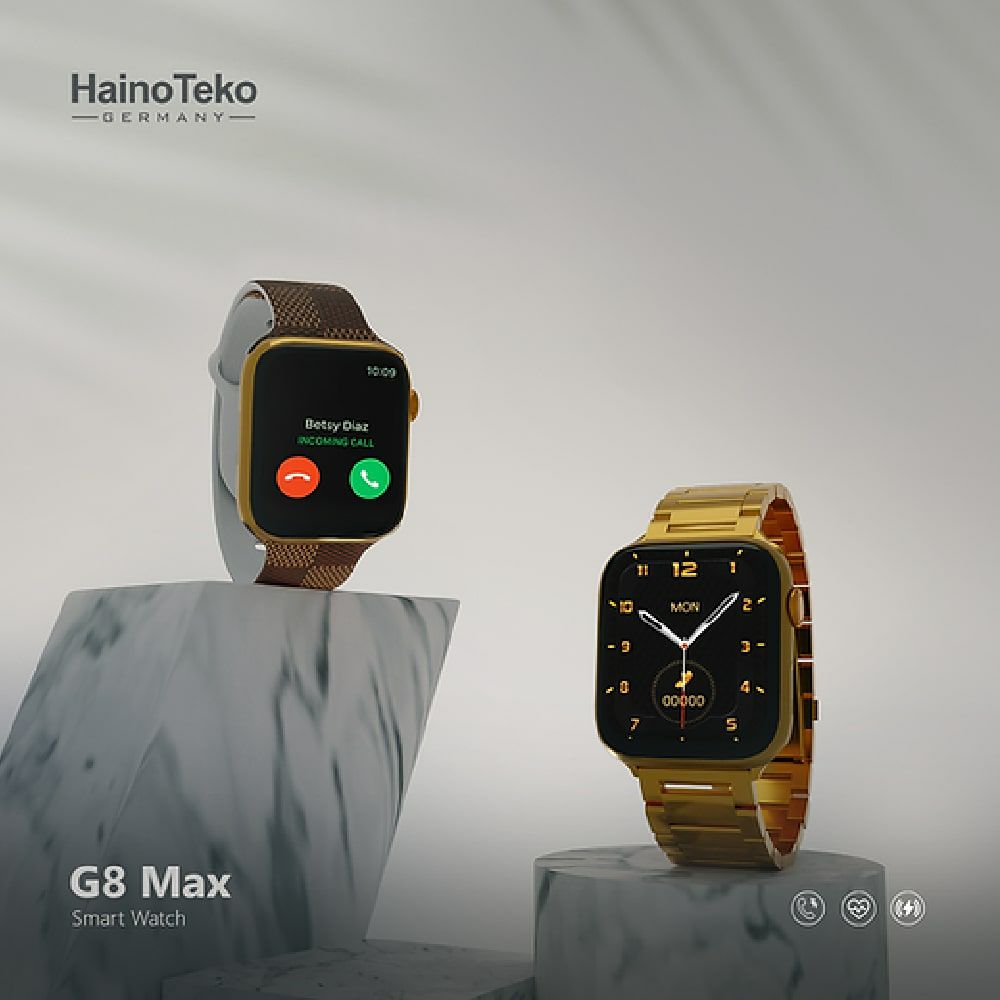 ساعة ذكية مع سوار ذهبي حديد وسوار اضافي تدعم الاتصال والاشعارات Haino Teko G8 Max الذكية 45 ملم