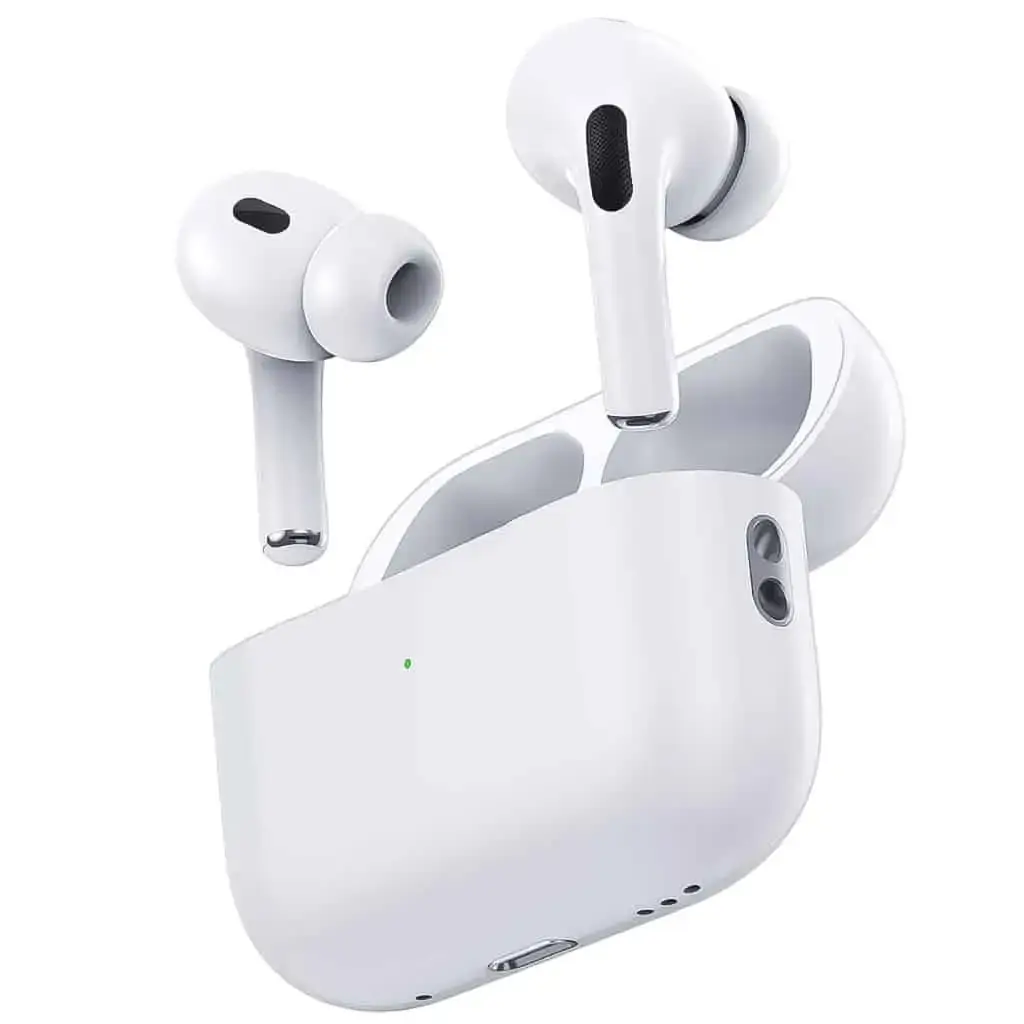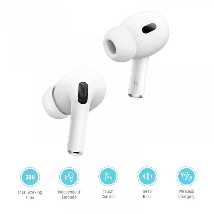 سماعات اذن لاسلكية برو 2، باس عميق، شحن لاسلكي، بطارية 20 ساعة، بلوتوث، بورودو ازرق – ابيض