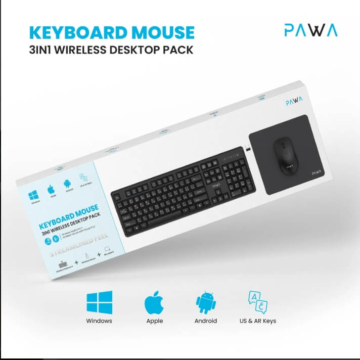 طقم ماوس وكيبورد وماوس باد مجموعة لوحة المفاتيح والماوس 3 في 1 اللاسلكية لسطح المكتب