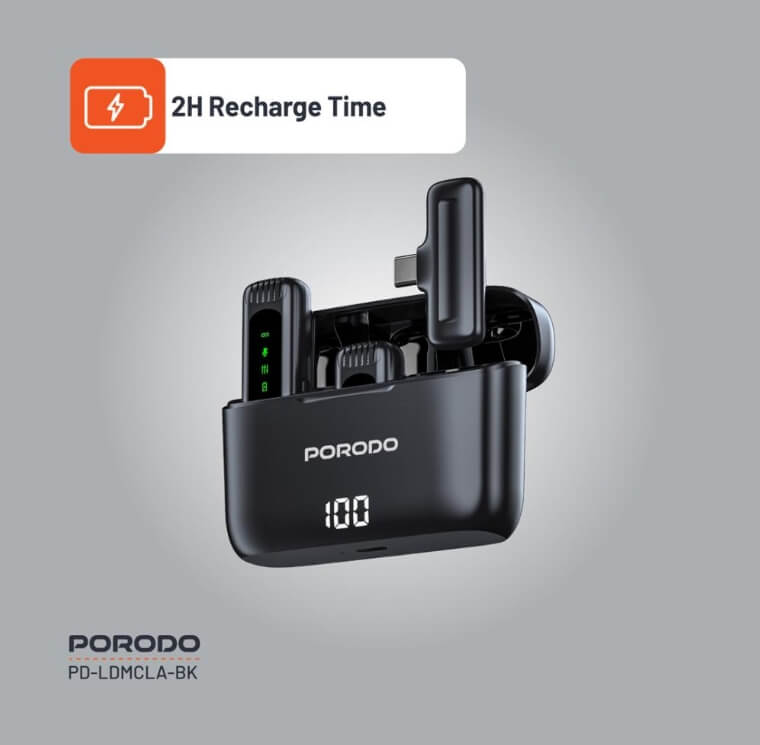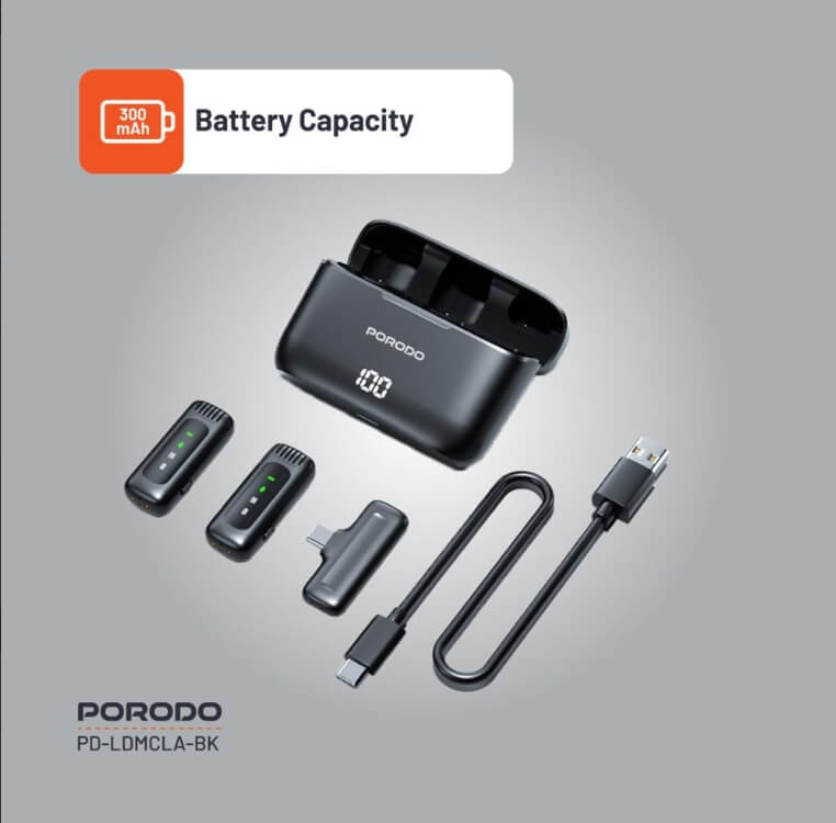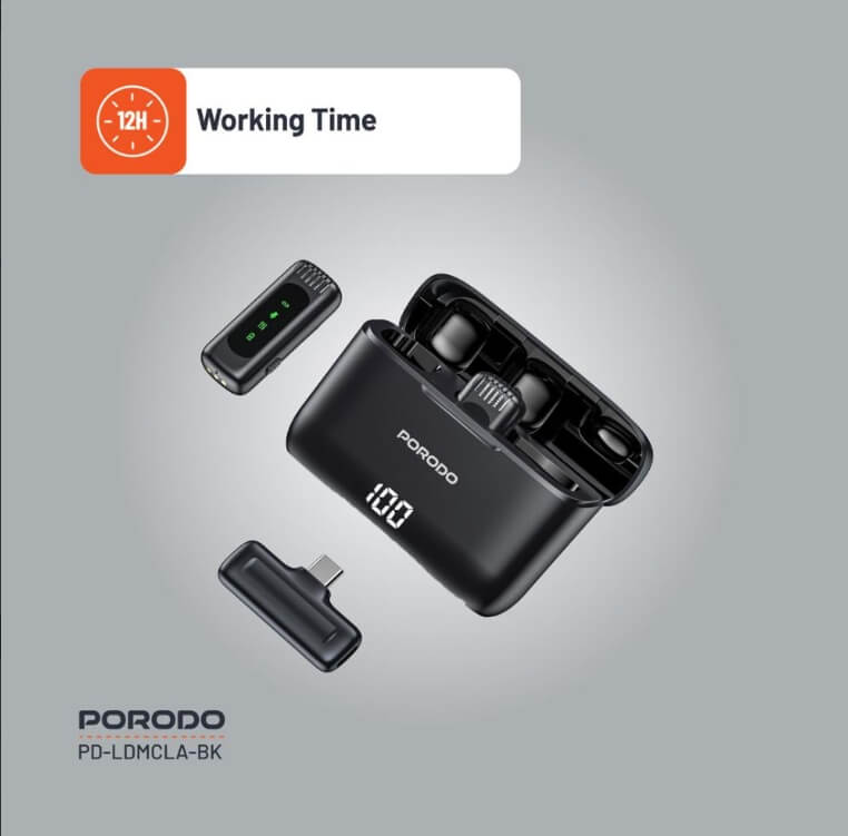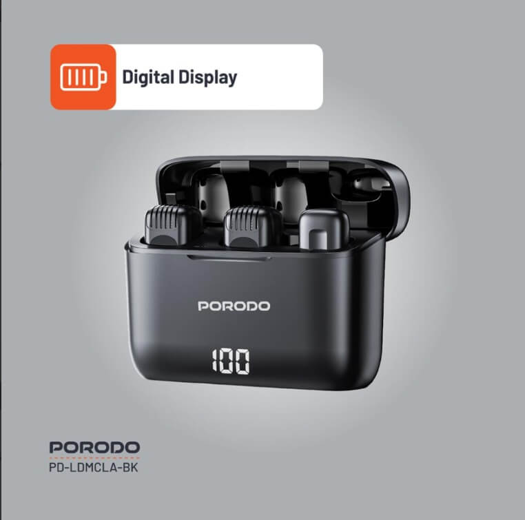 ميكروفون لافاليير ميكروفون بورودو المزدوج مع علبة شحن ذكية ⚡ 4 ساعات عمل وساعة شحن فائقة السرعة