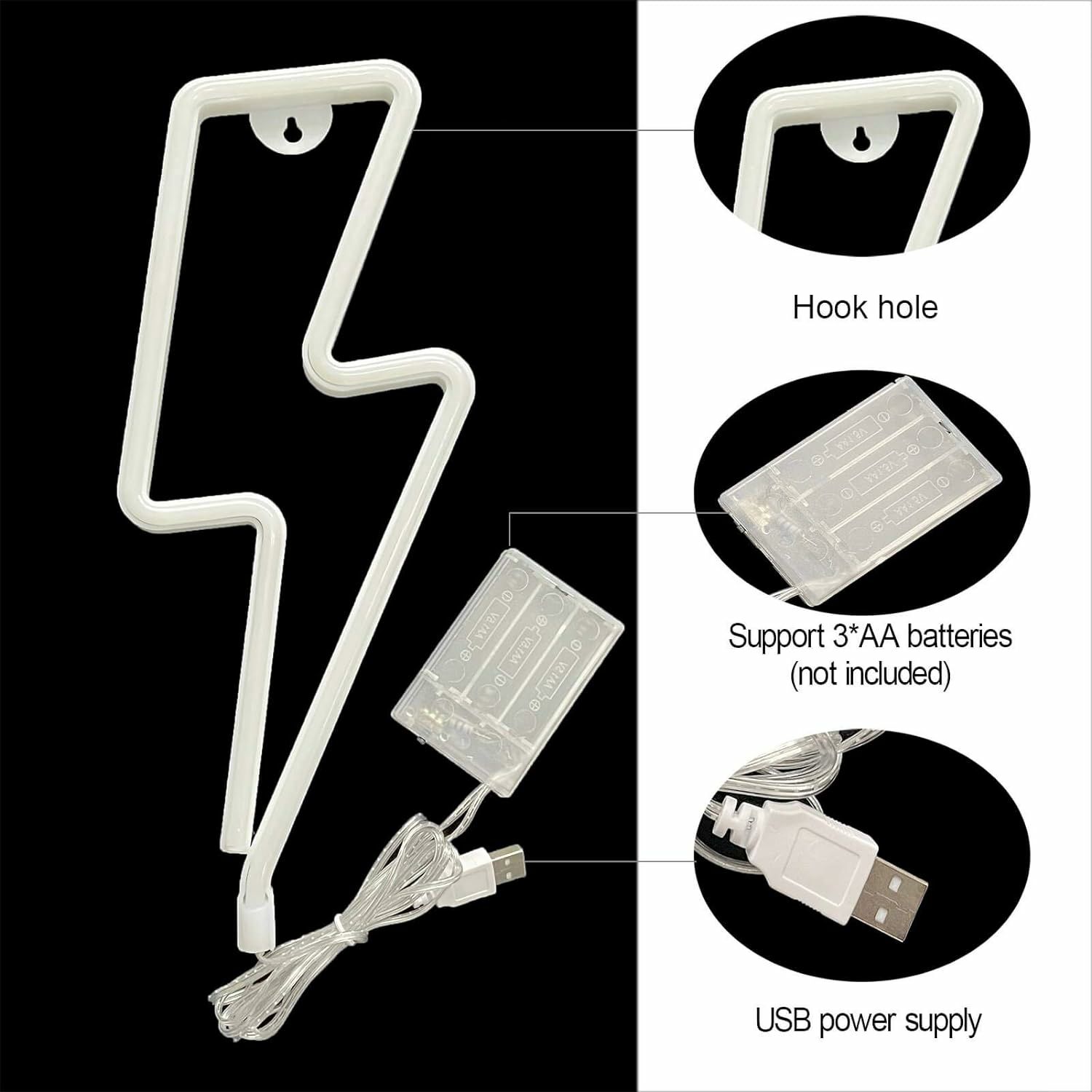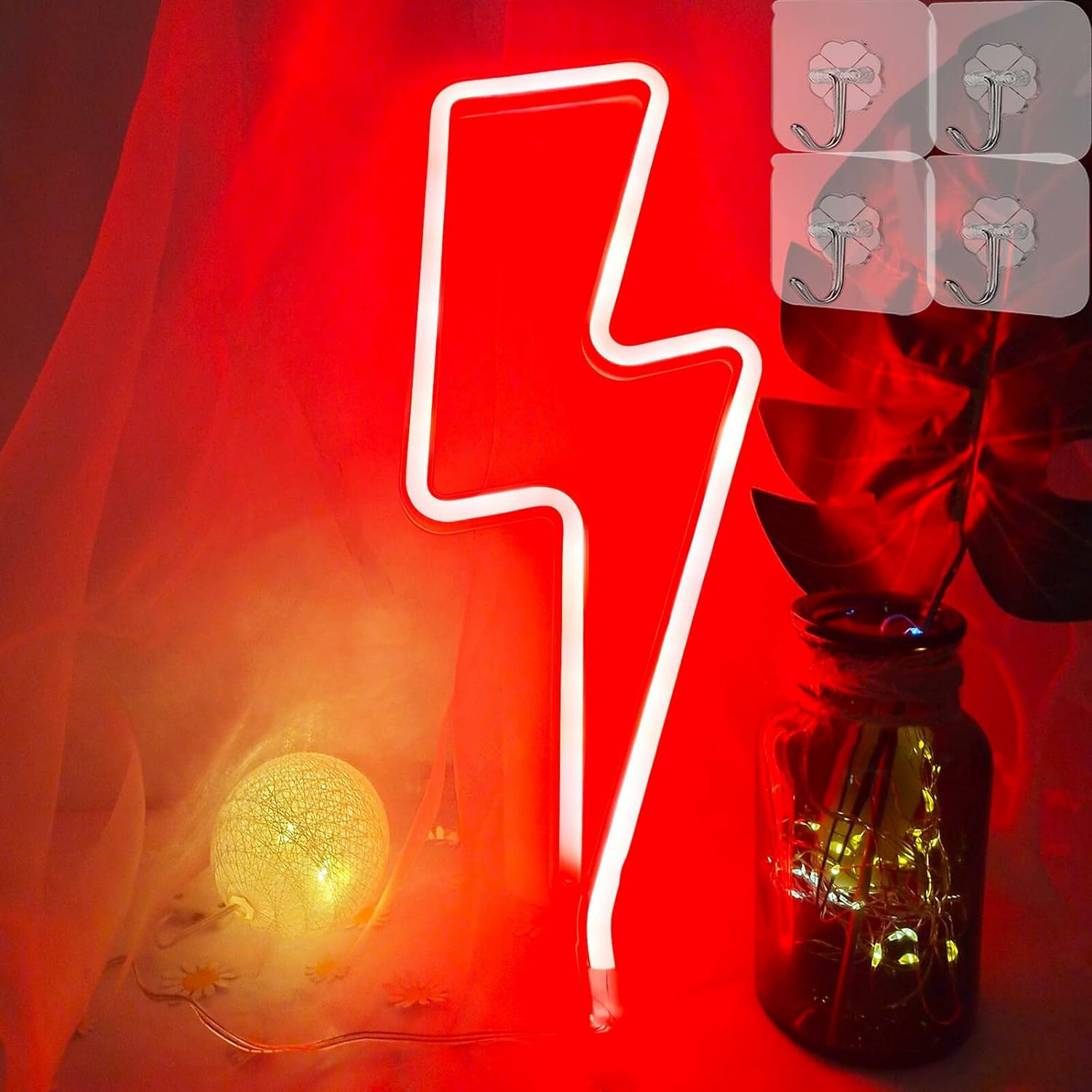 اضاءة على شكل برق لون احمر شكل البرق ضوء النيون لديكور الحائط، أضواء نيون البرق، USB/بطارية تعمل بالطاقة LED ضوء