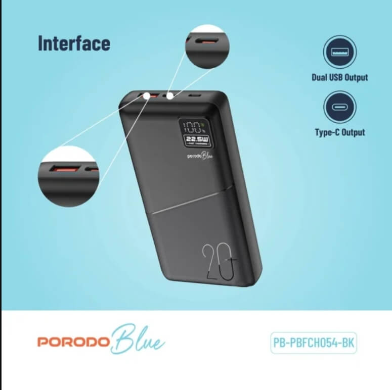 ابقَ متصلاً دائمًا مع باور بانك بورودو بلو 20000mAh الذي يجمع بين السعة الكبيرة، الشحن السريع، والتصميم العملي