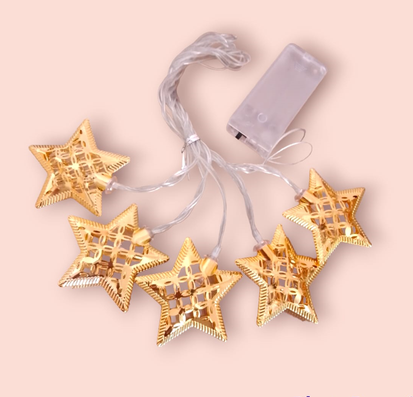 تعليقة زينة رمضان نجوم معدنية ثلاثية الابعاد بأضائات led لون أصفر (رمضان كريم) الطول 2 متر