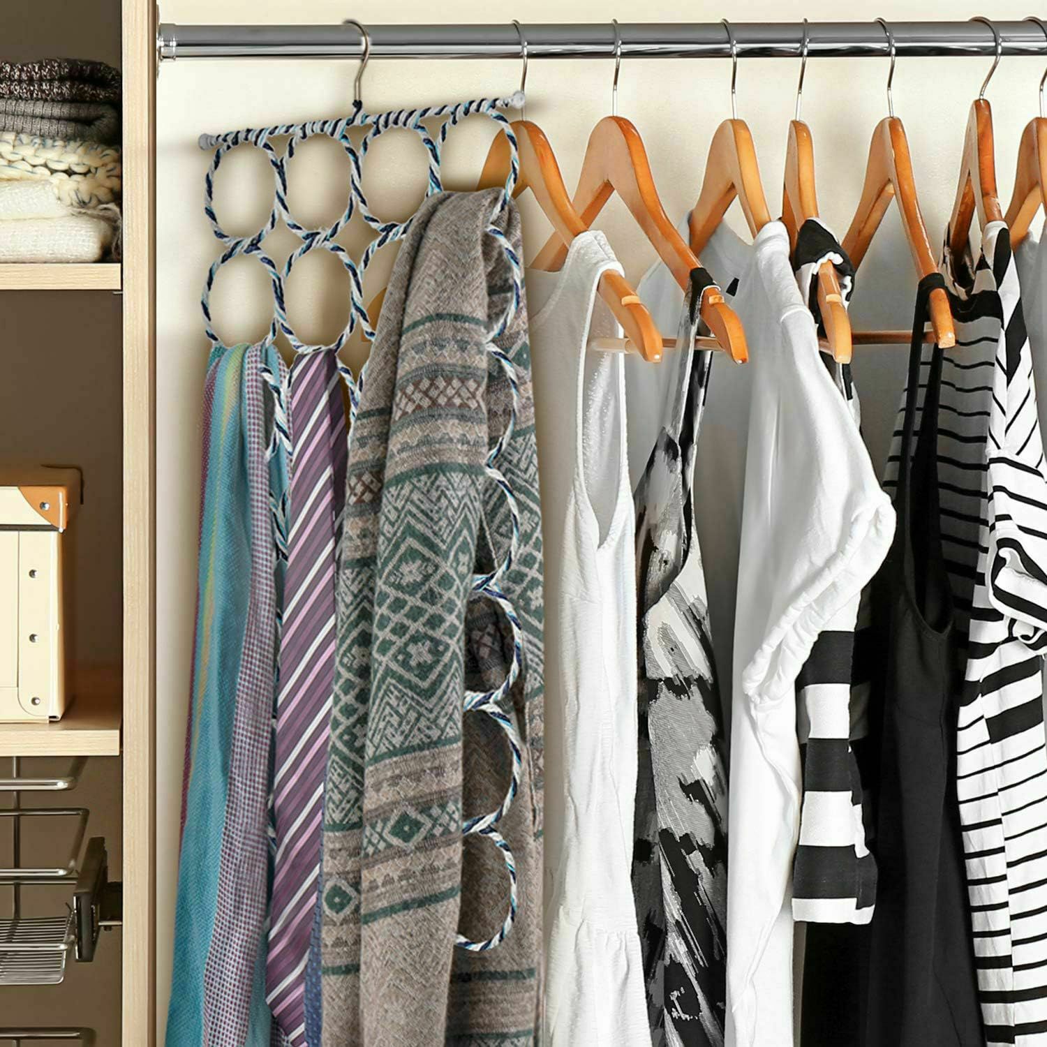 حامل شماعات وشاح Flexzion – 28 دائرة (عبوة من قطعتين) فتحات حلقية متعددة الوظائف، منظم منزلي، لجوارب ووشاح وحزام كاتم الصوت..