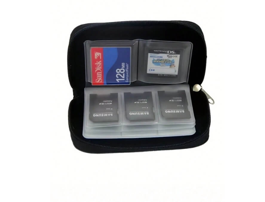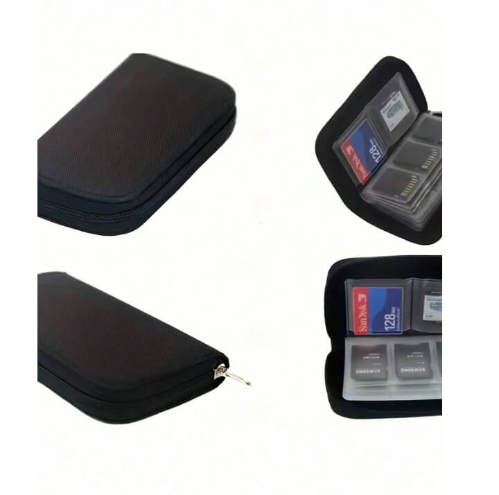 احفظ بطاقات الذاكرة الخاصة بك بأمان وتنظيم مع حقيبة تخزين بطاقات متعددة الوظائف من PVC، المصممة خصيصًا لحماية بطاقات الكاميرا، بطاقات الذاكرة من نوع CF وSD، وغيرها من البطاقات الصغيرة الحجم