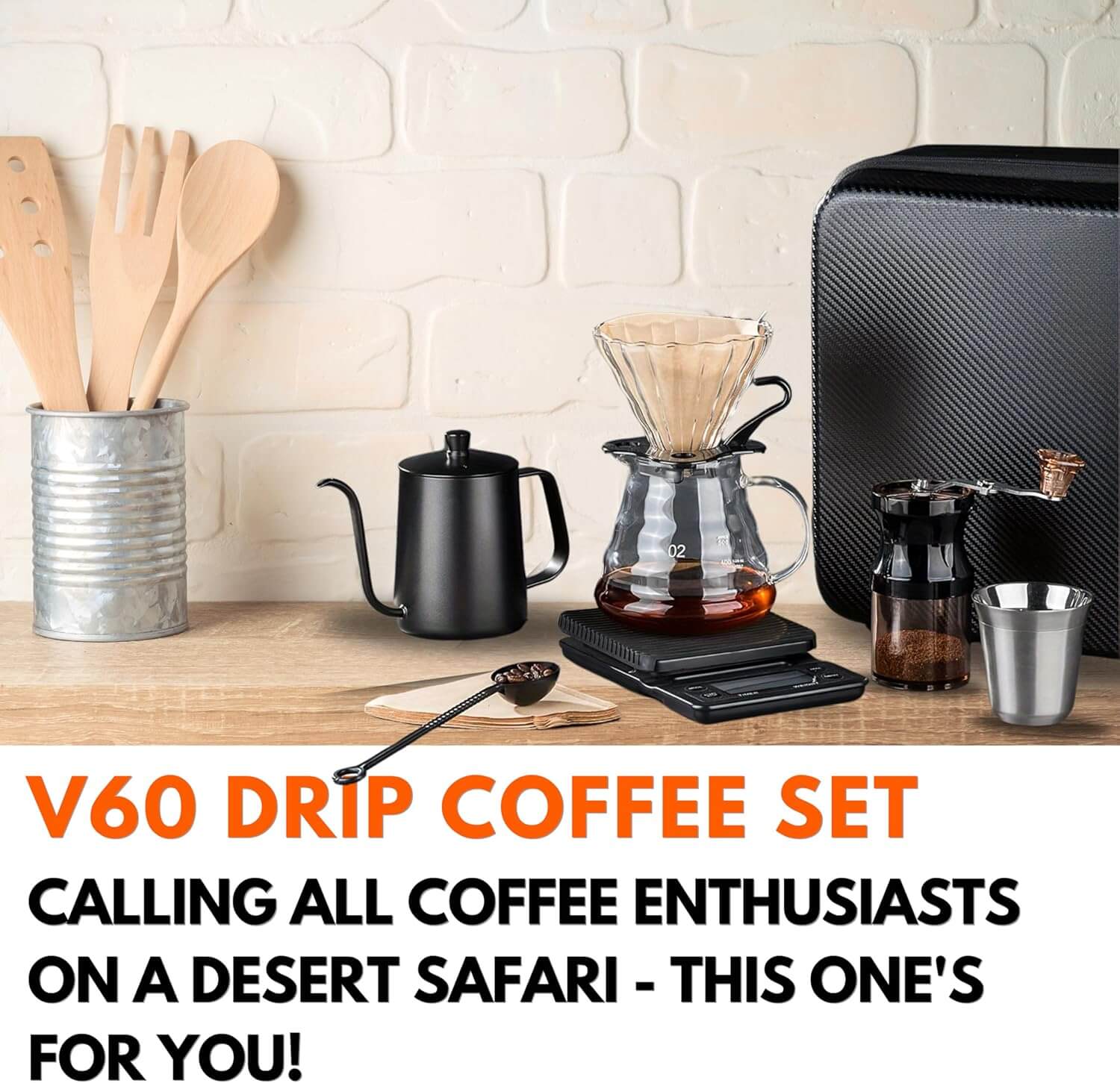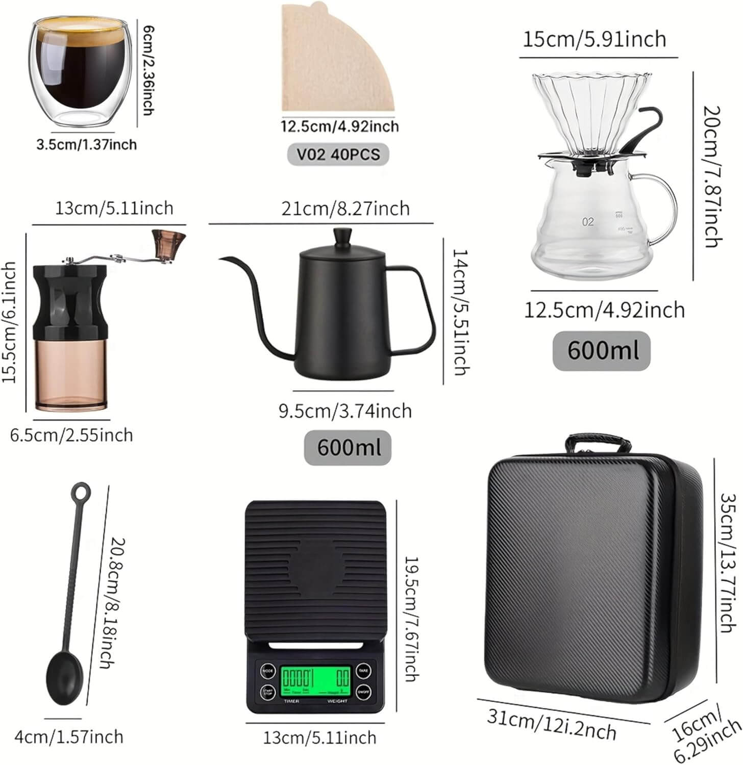 حقيبة قهوة V60 مجموعة صانعة القهوة اليدوية المتكاملة من Memelon – 9 قطع مع حقيبة محمولة، مطحنة، غلاية، فلتر وأدوات باريستا اح