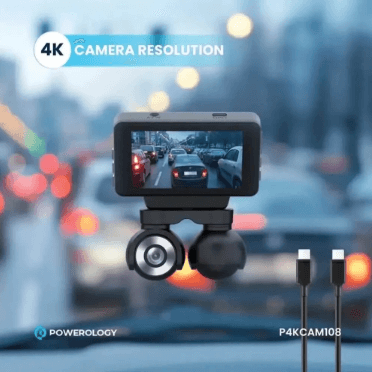 داش كام كاميرا للسيارات كاميرا Powerology Dash CAM108 مزدوجة العدسات – تصوير أمامي 4K وداخلي FHD