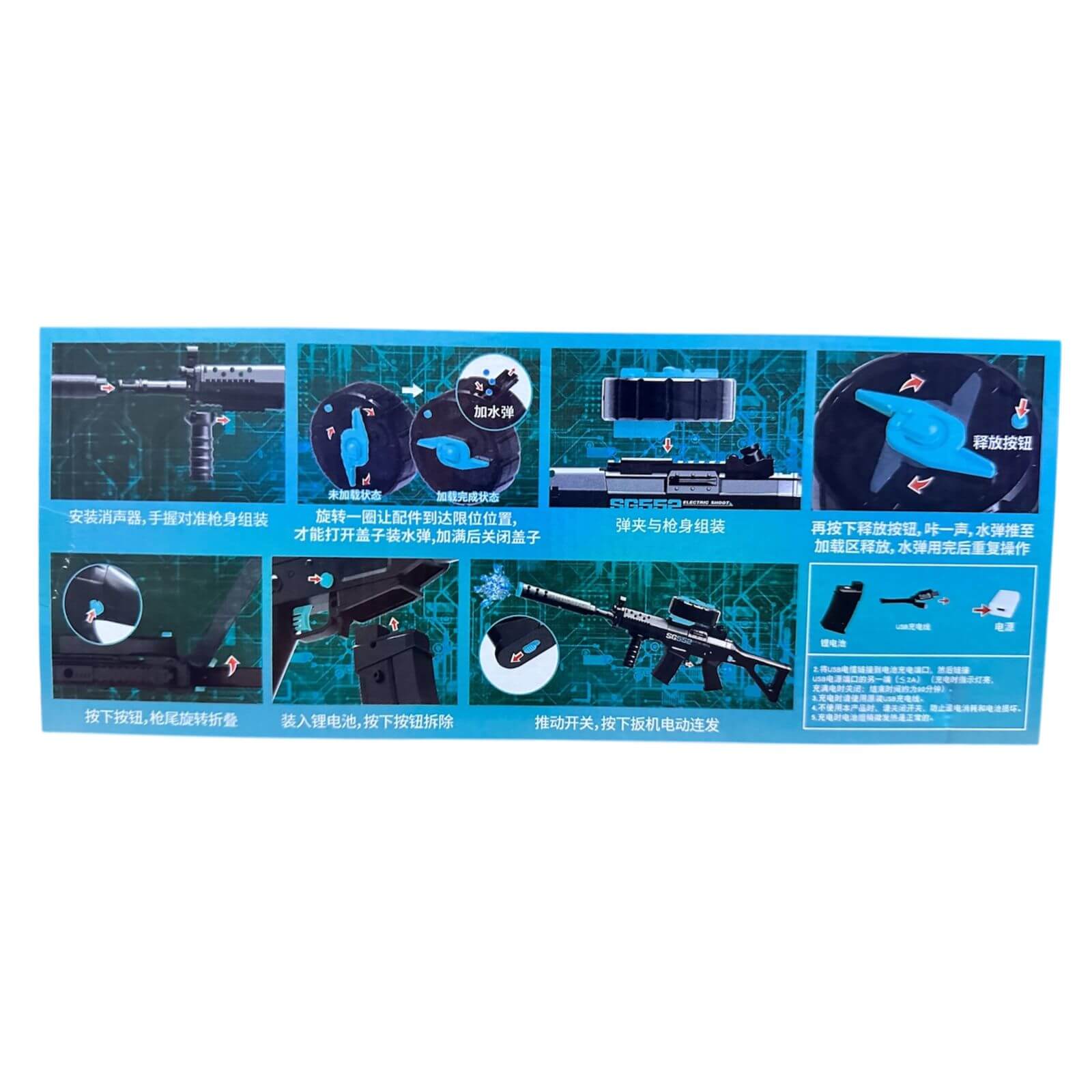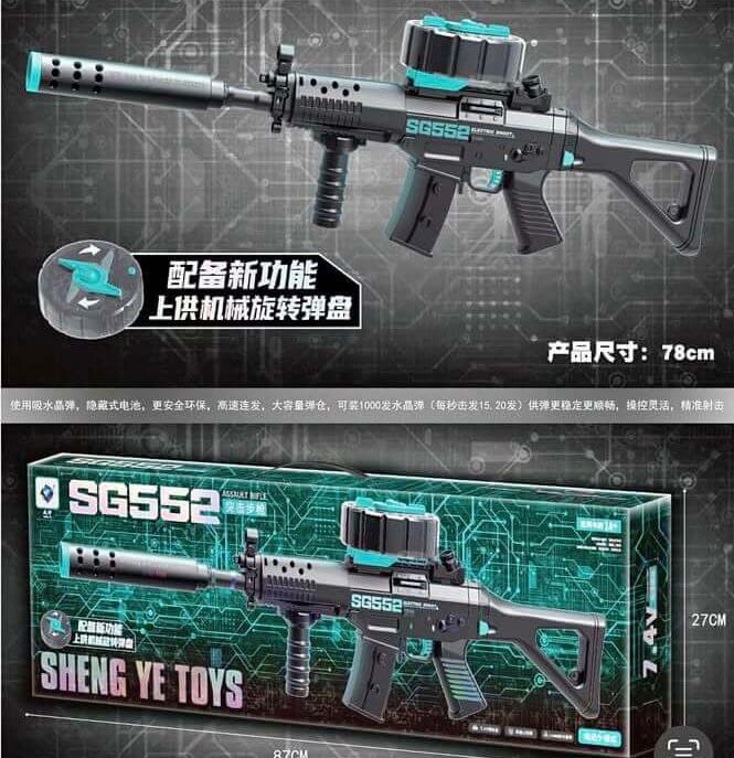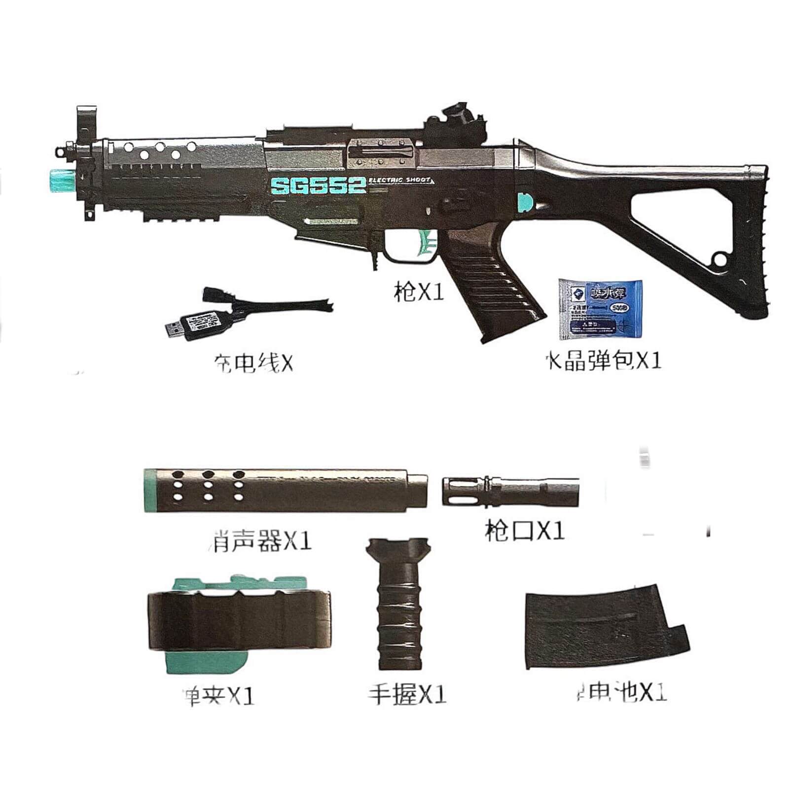 رشاش خرز الكرات الهلامية SG552 اوتماتيك مع خزان كبير جدا ياتي معه 500 كره قوي يصل لمسافة 25 متر مسدس خرز جل كهربائي