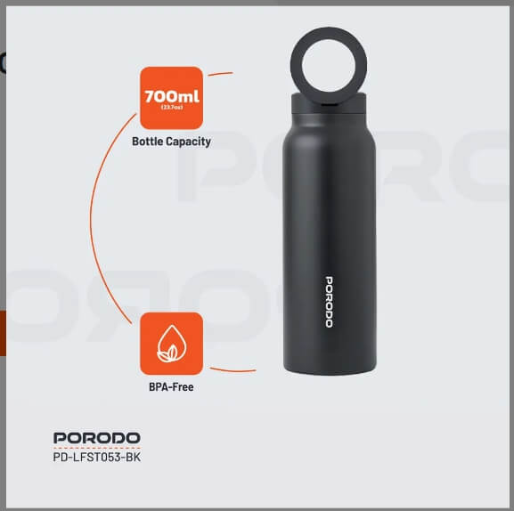 زجاجة مياه مغناطيسية من بورودو لايف ستايل – لون أسود
