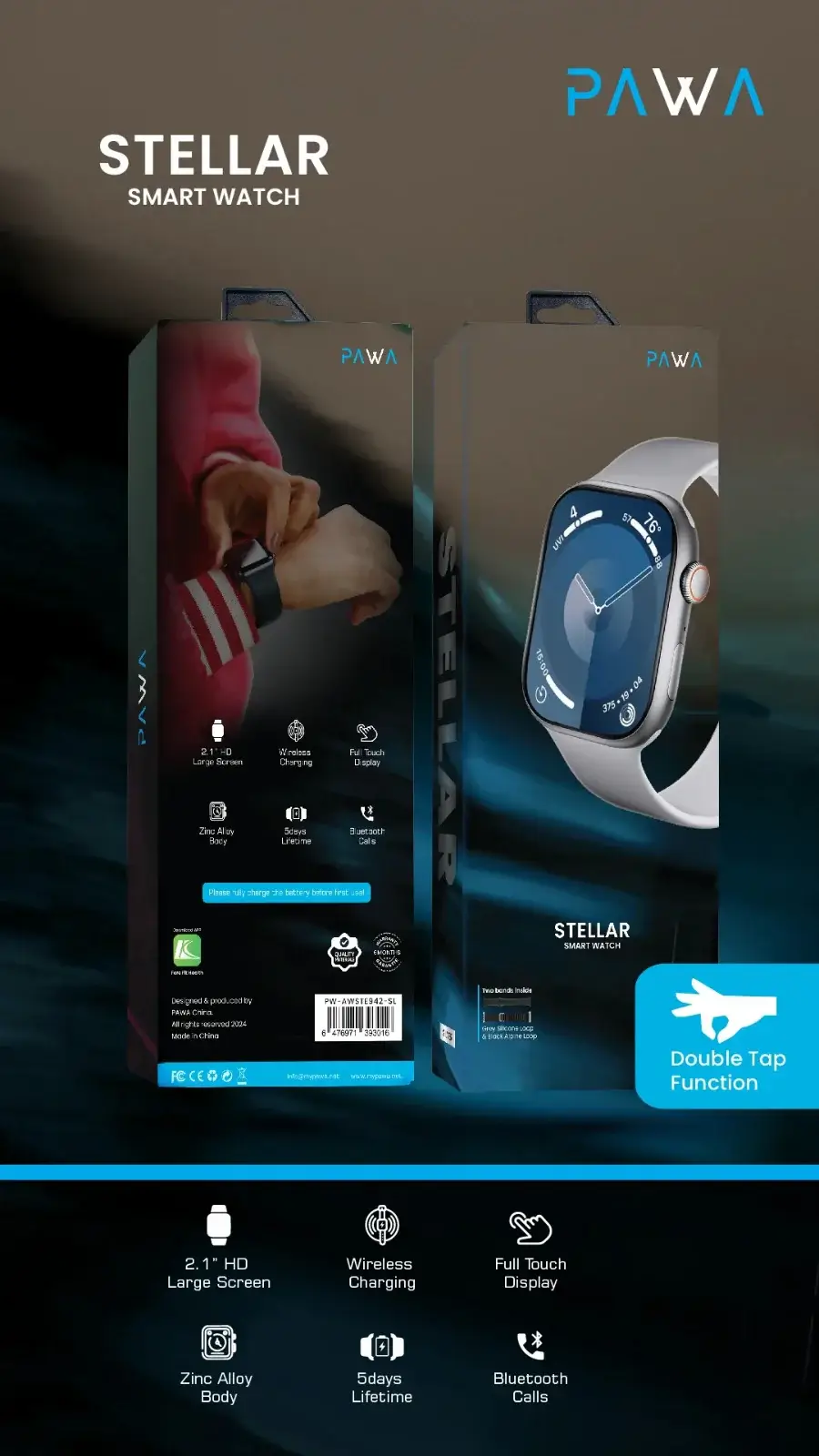 ساعة ذكية تدعم الاتصالات وبرامج الصحة والرياضة واللغة العربية مع بطارية قوية 5 ايام ساعة باوا ستيلر الذكية – فضي