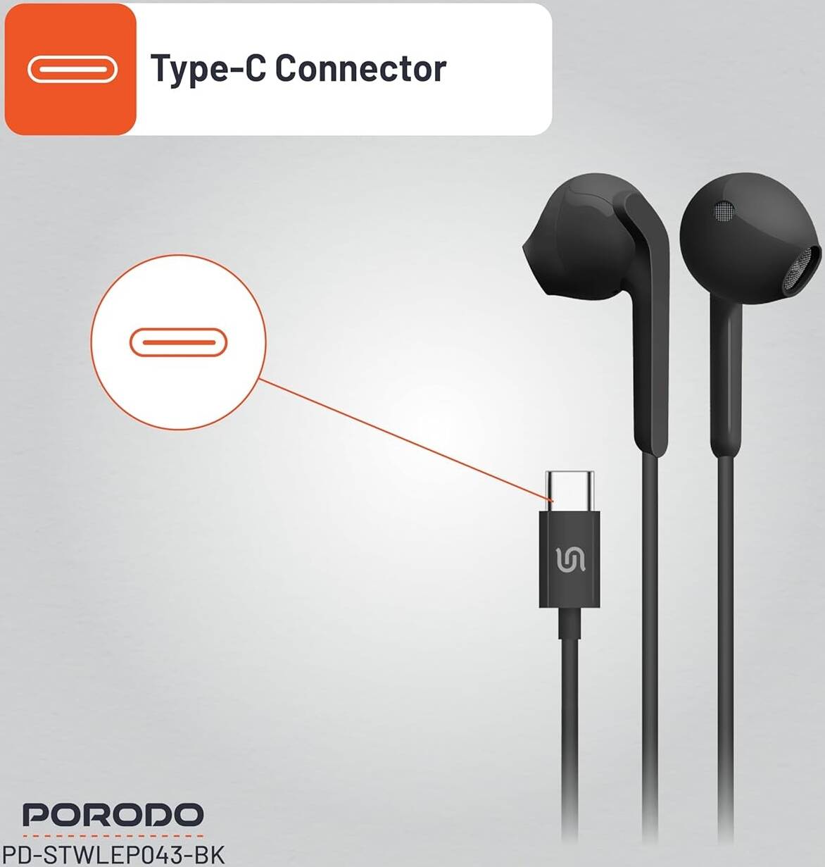 سماعات أذن ستيريو بورودو ساوندتيك، مصنوعة من مادة TPE + معدن + ABS، اتصال من النوع C، طول الكابل 1.2 متر، ميكروفون عالي الوضو
