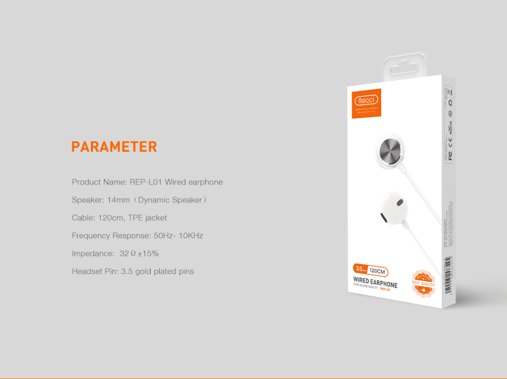 سماعة اذن سلكية ابيض RECCI REP-L01 120 cm
