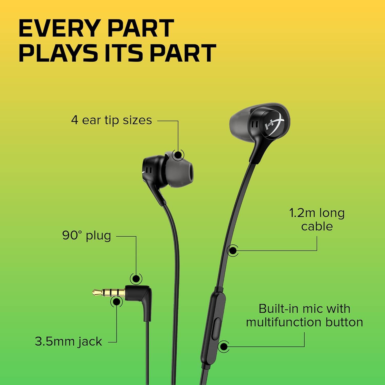 سماعة جيمنج سلكية من هايبر اكس سماعات أذن HyperX Cloud Earbuds II للألعاب مع ميكروفون – أسود (70N24Aa)، داخل الأذن، سلكية
