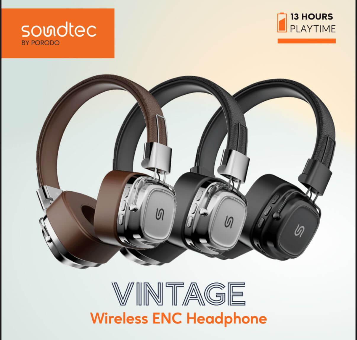 سماعة رأس بلوتوث بورودو ساوندتيك فينتاج اللاسلكية 12 ساعة عمل ENC