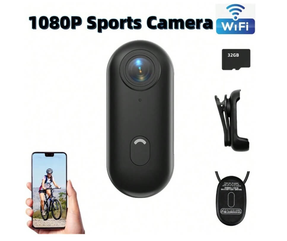كاميرا رياضية خارجية بدقة 1080P – رفيقة مغامراتك مع بطاقة 32GB للرياضة والمغامرات 🏔️📸