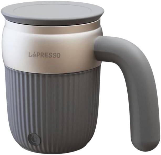كوب التحريك المغناطيسي التلقائي من Lepresso، سعة 450 مل، بطارية مدمجة 300 مللي أمبير/ساعة، منفذ شحن من النوع C، تحريك تلقائي،
