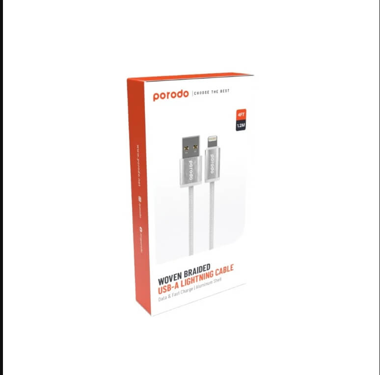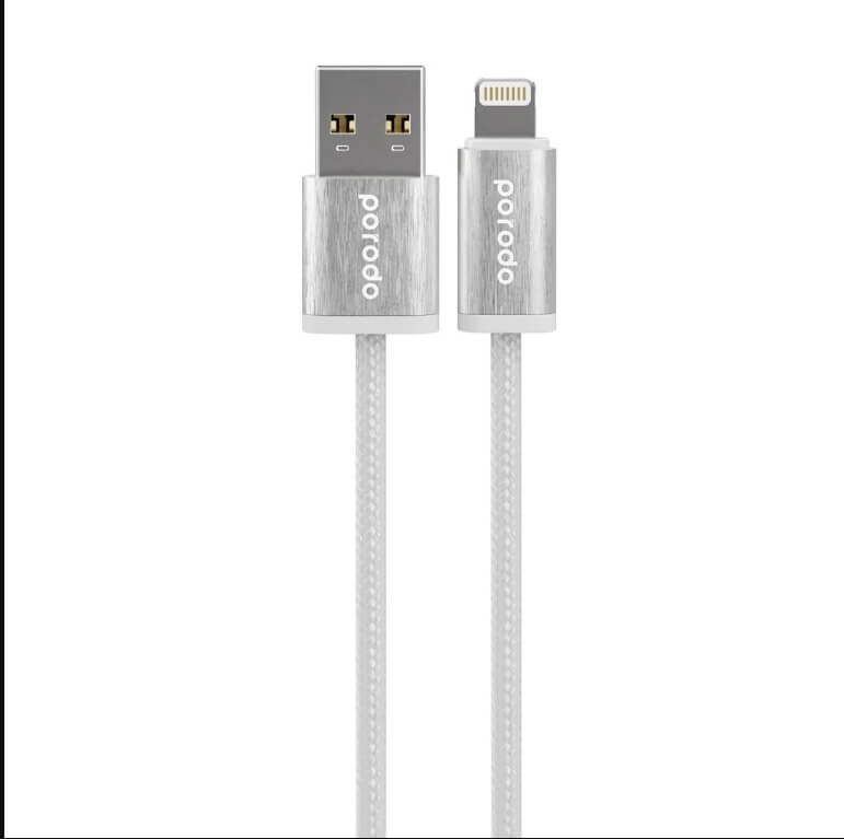 كيبل شحن كابل بورودو منسوج 2.4 أمبير USB A إلى Lightning بطول 1.2 متر – أبيض
