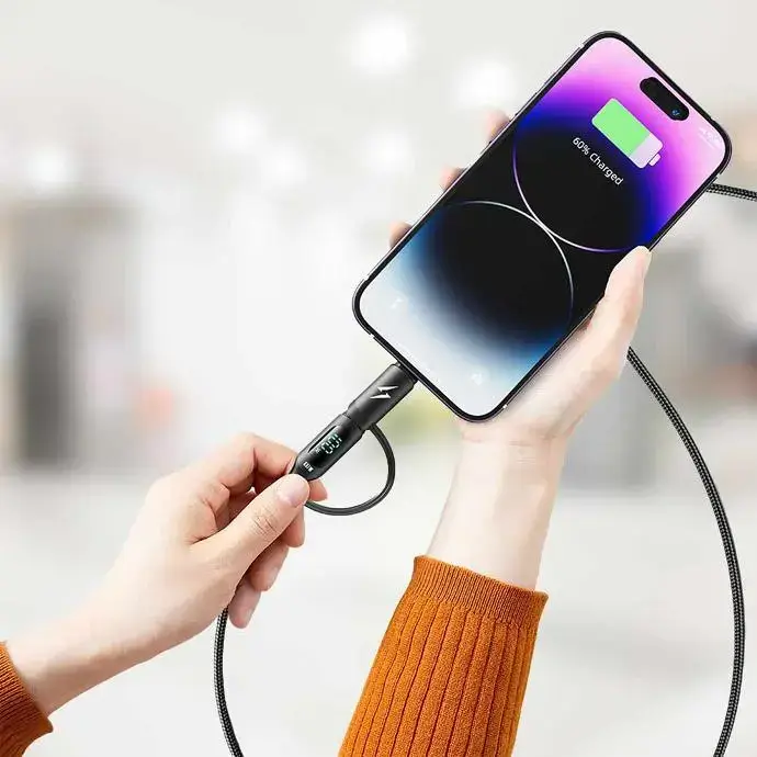 كيبل شحن Porodo 2-IN-1 شاشة رقمية شحن سريع كابل 1.2 متر C إلى C+L – أسود