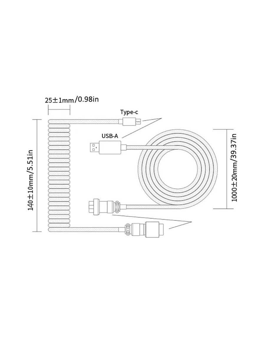 كيبل كيبورد الألعاب الآلي الأسود بموصل من نوع Usb-a إلى Type-c مقسم إلى قسمين 2 مقبس من 5 دبابيس كيبل كيبورد جيمنج لون ابيض