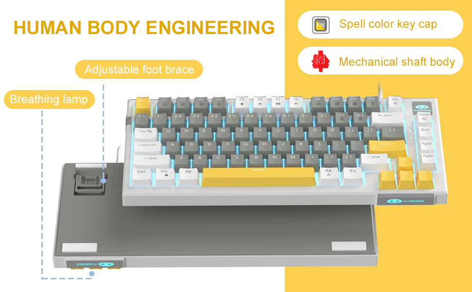 كيبورد جيمنج سوتش احمر لوحة مفاتيح ميكانيكية MageGee، لوحة مفاتيح سلكية للألعاب بإضاءة خلفية ولوحة مفاتيح USB رفيعة للغاية مع