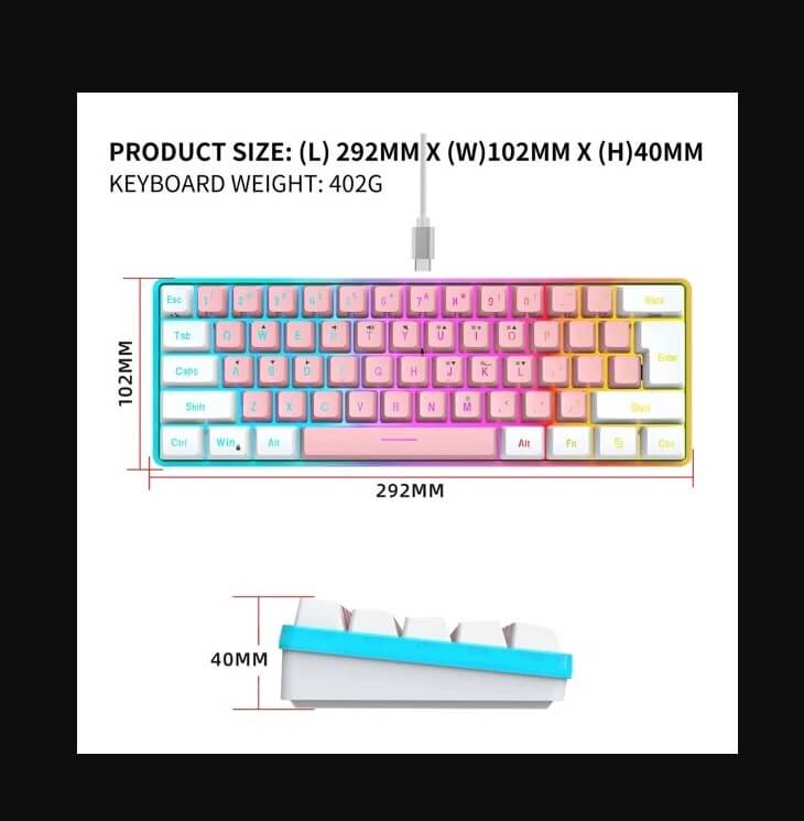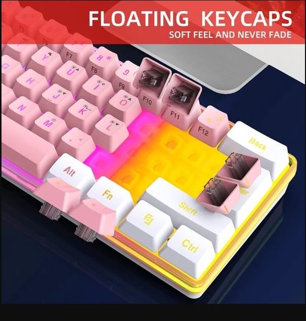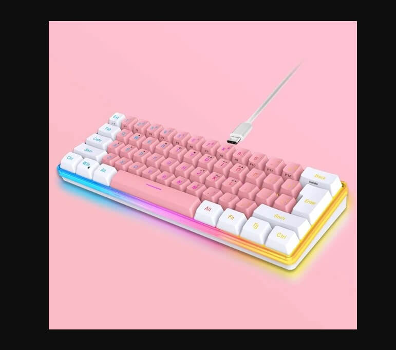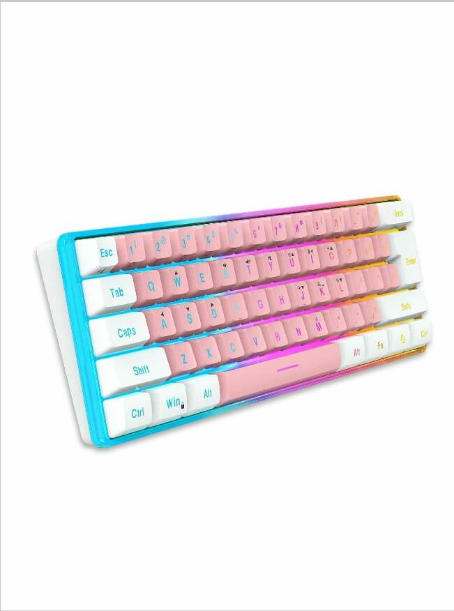 كيبورد جيمنج شبه ميكانيكي مادة ABS لإضاءة RGB باللون الوردي + الأبيض، لوحة مفاتيح سلكية، لوحة مفاتيح صغيرة مدمجة 61، مناسبة ل