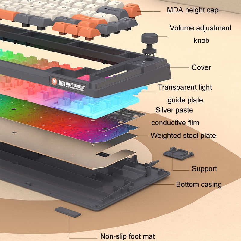 وصف الأجهزة المتوافقة: الكمبيوتر الشخصي والكمبيوتر المحمول عدد المفاتيح: 85 مفتاحًا اللون: K81 لامع المواد: عبس الشهادة: سي البطاريات متضمنة: لا مصدر الطاقة: سلك طاقة USB نوع البطارية: لا يوجد تقنية الاتصال: سلكي نوع الإضاءة الخلفية: إضاءة RGB أنواع لوحة المفاتيح: لوحة المفاتيح الغشائية