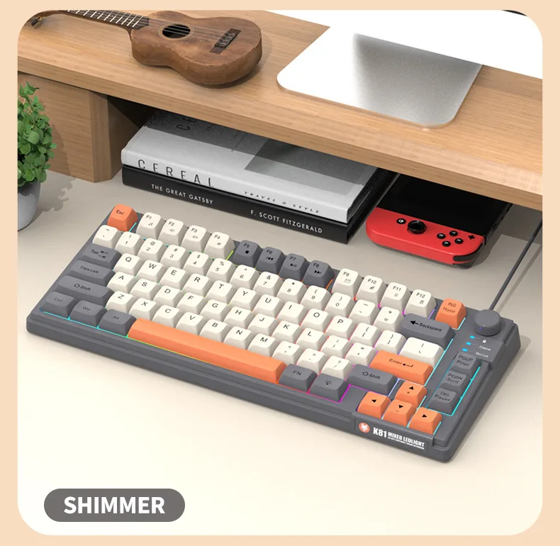 كيبورد جيمنج لوحة مفاتيح للألعاب بنسبة 85%، مفاتيح دوارة بغشاء رقيق خفيف RGB، واجهة USB، لوحة مفاتيح سلكية باللون الأبيض والأ