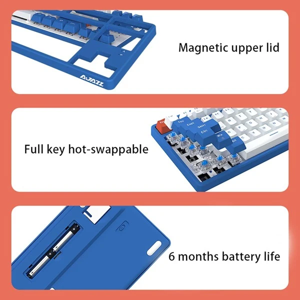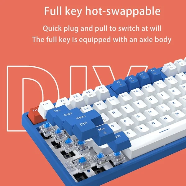 كيبورد جيمنج ميكانيكي لاسلكي سوتش أزرق لاسلكي 2.4G مع ازرار ملنه قابله للتغير كيبورد ميكانيكي كيبورد لاسلكي