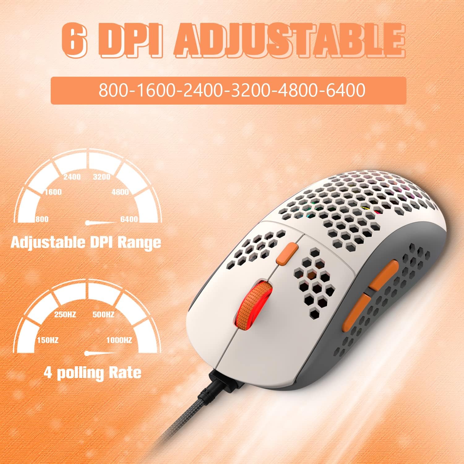 ماوس جيمنج ماوس ألعاب سلكي فائق الخفة من KUIYN 383 PRO، هيكل قرص العسل خفيف الوزن، 6 ماوس بإضاءة خلفية للتنفس RGB، 6 DPI 6400