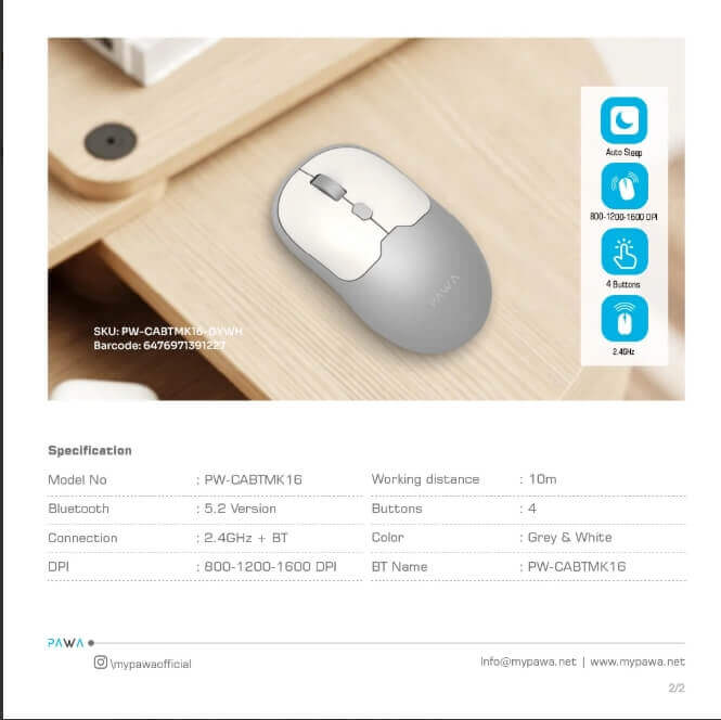 ماوس لاسلكي وبلوتوث صغير للمكاتب واللابتوب والهواتف محمول ماوس لاسلكي ثنائي الوضع بدقة 1600 نقطة في البوصة