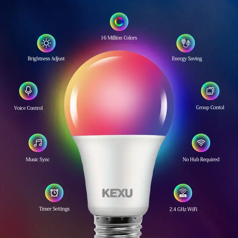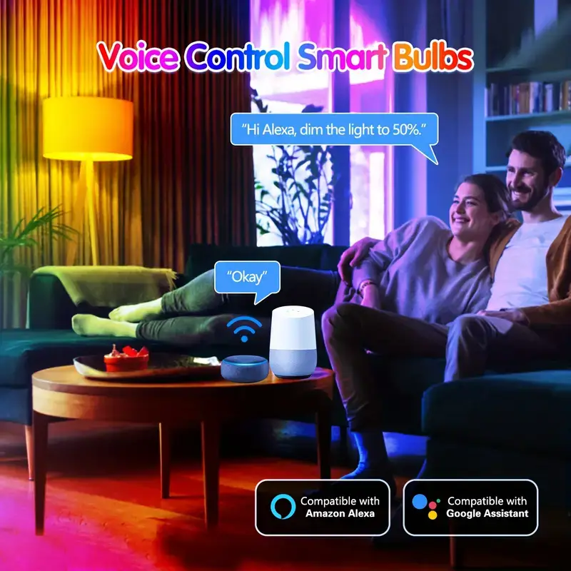 مصابيح ذكية 4 قطع إضاءة المنزل الذكي مصابيح WIFI RGBW اللاسلكية متوافقة مع Alexa وGoogle Assistant، والتحكم الصوتي الذكي، وا
