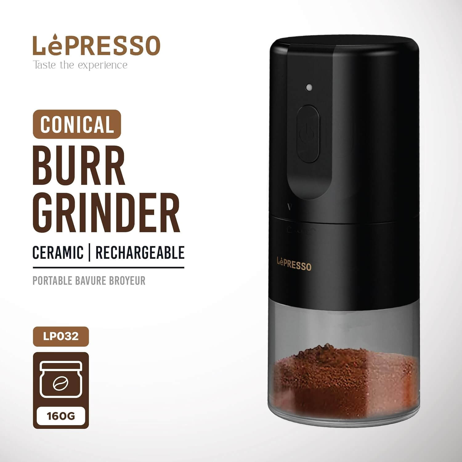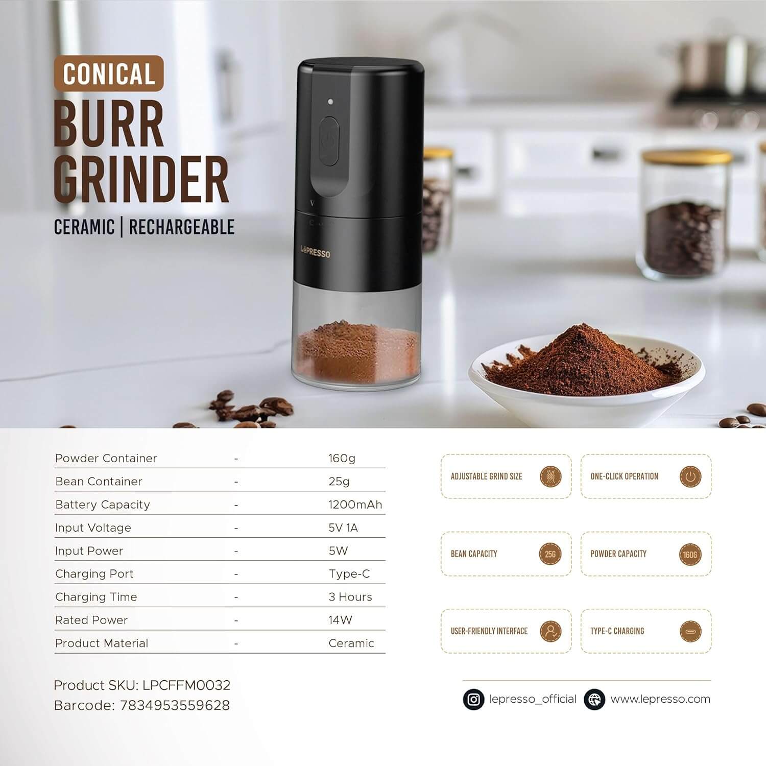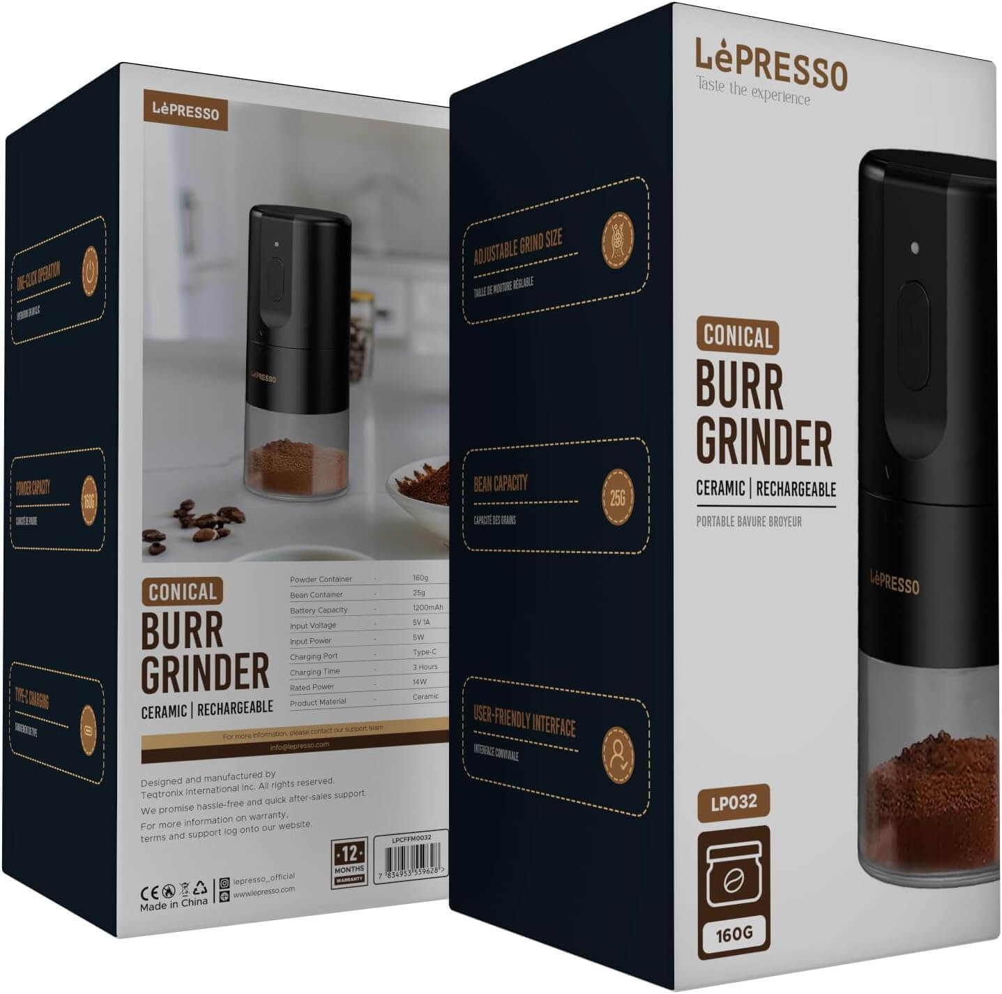 مطحنة قهوة محمولة LePresso Broyeur ، وسعة البطارية 1200 مللي أمبير، وواجهة قابلة للتكيف، وذيل متصفح متوافق، ووظيفة إلغاء النق
