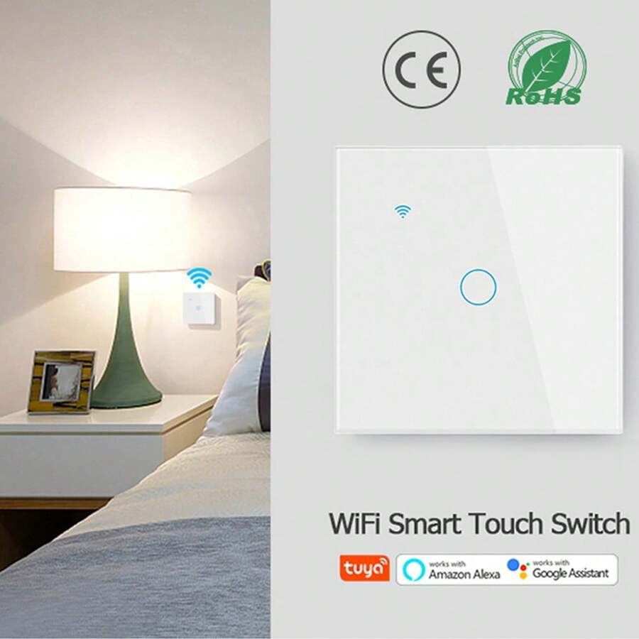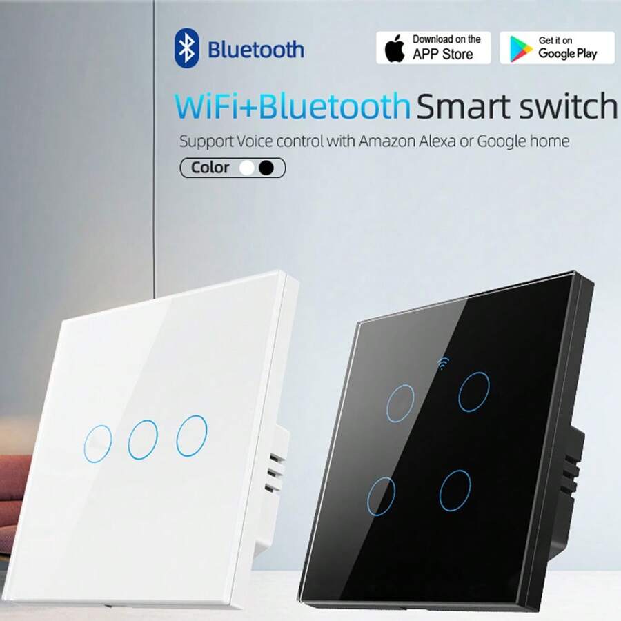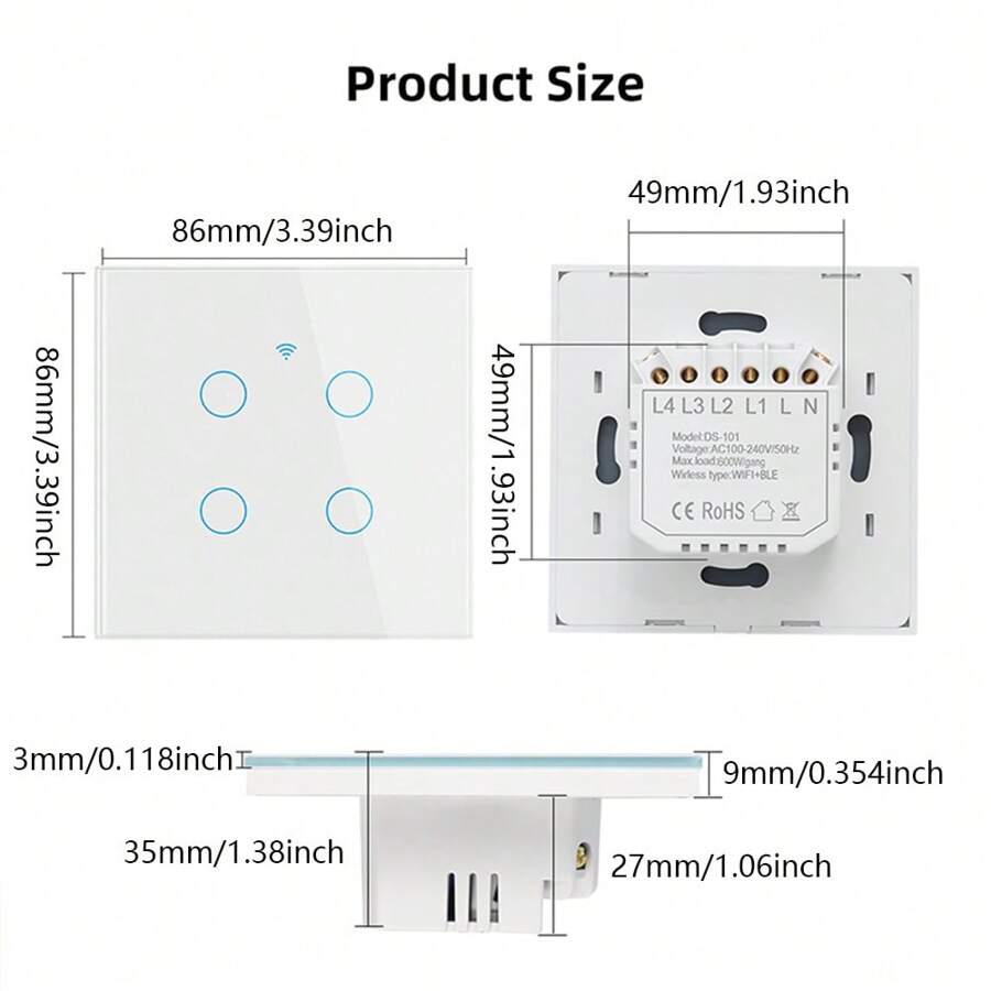 مفتاح كهرباء ذكي مفتاح ذكي جداري باللمس للإضاءة واي فاي وحدة التحكم الذكي (اربع نقاط) ، يعمل مع أليكسا