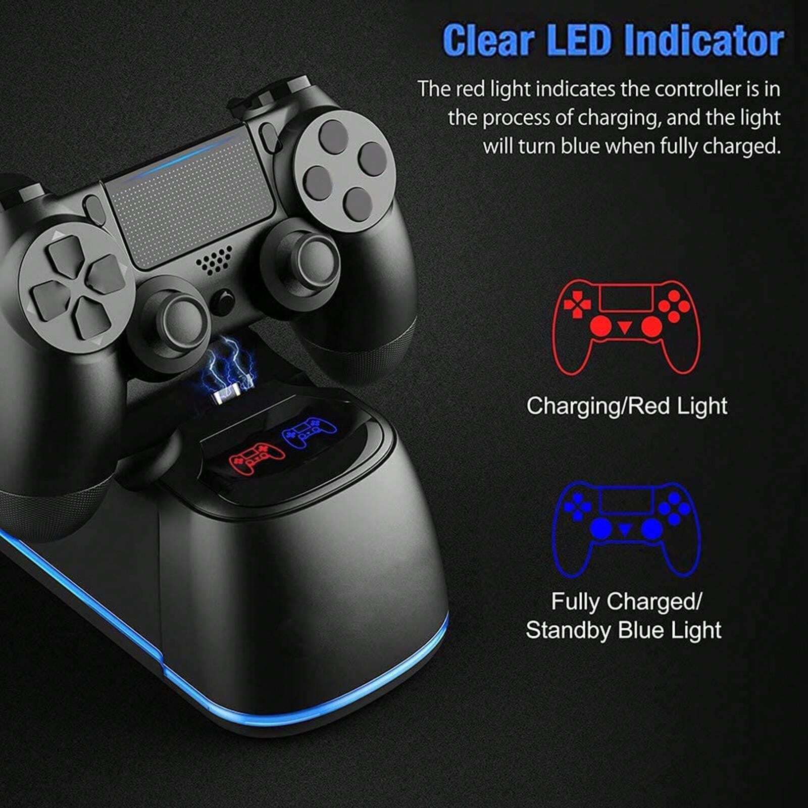 منصة شحن لاجهزة البلايستيشن4 دوك شحن وحدة التحكم، دوك شحن لوحدة التحكم Ps4 المتطورة برقاقة شحن سريعة 2 ساعات، مجهزة بمؤشر ضوئ