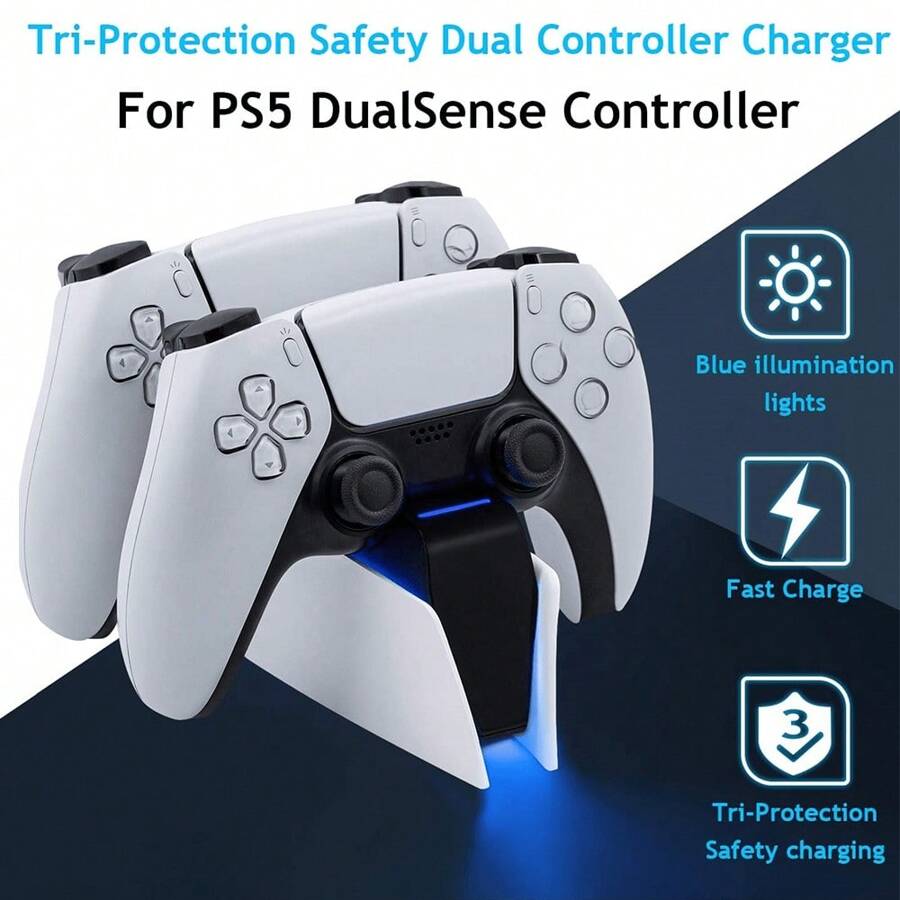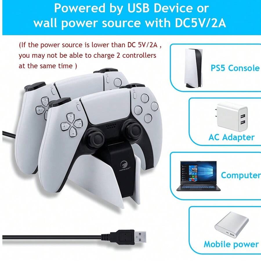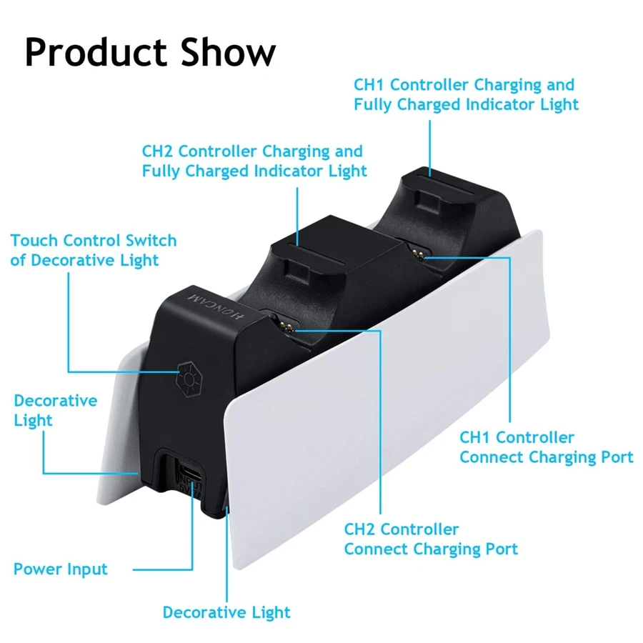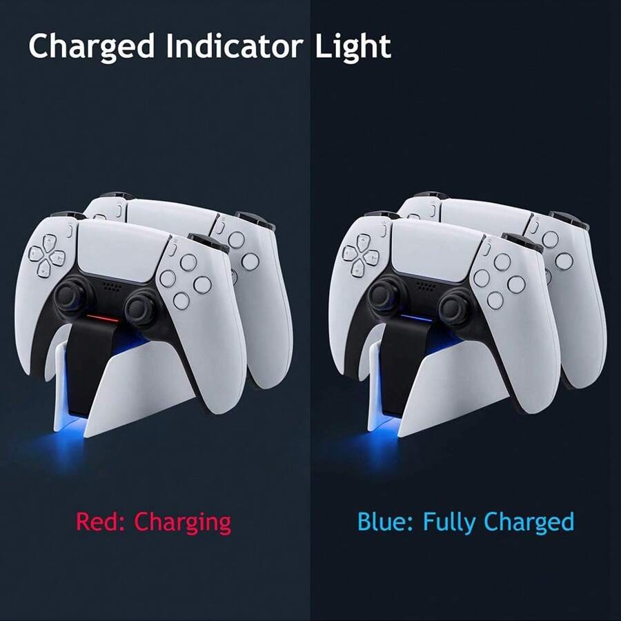 منصة شحن لاجهزة تحكم بلايستيشن5 محطة شحن مزدوجة لتحكم وايرلس Ps5 من جهة التحكم مع إضاءة جوية وتحكم لمسي ,باللونين الأبيض والأ