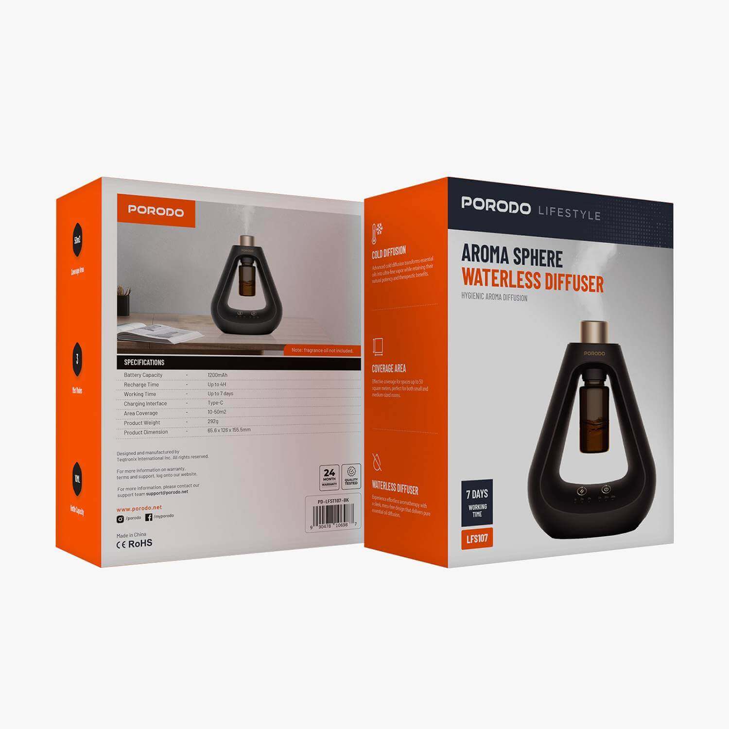موزع الروائح العطرية بدون ماء من بورودو لايف ستايل، تغطية 10-50 متر مربع، بطارية 1200 مللي أمبير، وقت عمل يصل إلى 7 أيام، انت