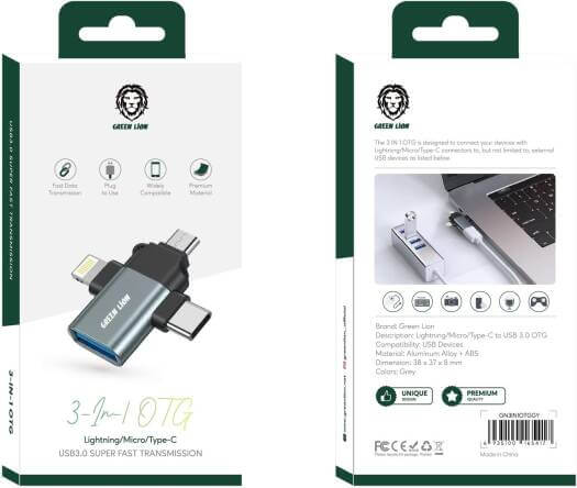 تم تصميم Green Lion 3 in 1 OTG لتوصيل أجهزتك بموصلات Lightning/Micro/Type-C، ولكن ليس فقط بأجهزة USB الخارجية