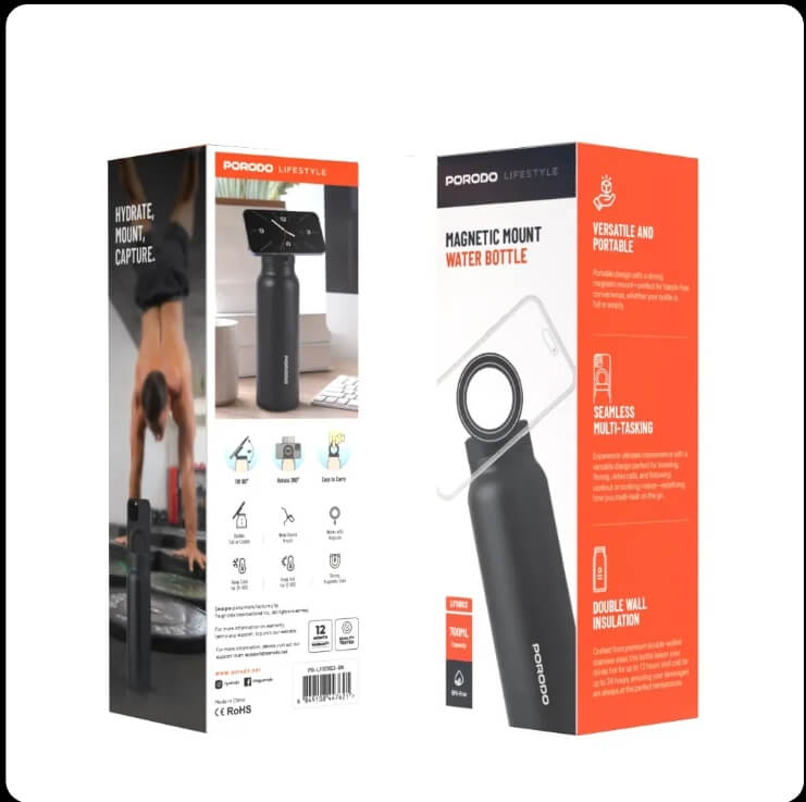 زجاجة مياه مغناطيسية من بورودو لايف ستايل – لون أسود