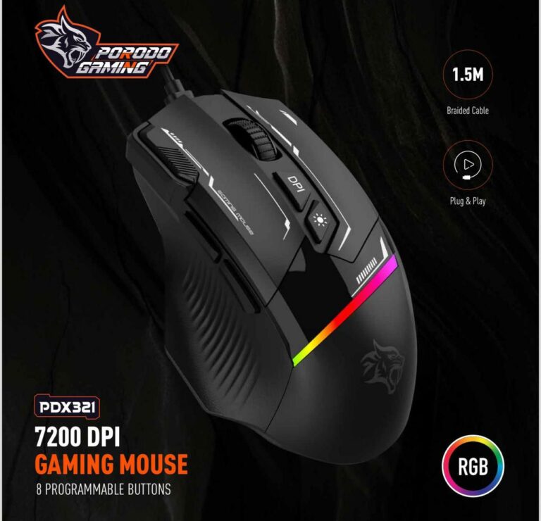 ماوس جيمنج ماوس ألعاب بورودو بدقة 7200 نقطة في البوصة و8 مفاتيح قابلة للبرمجة