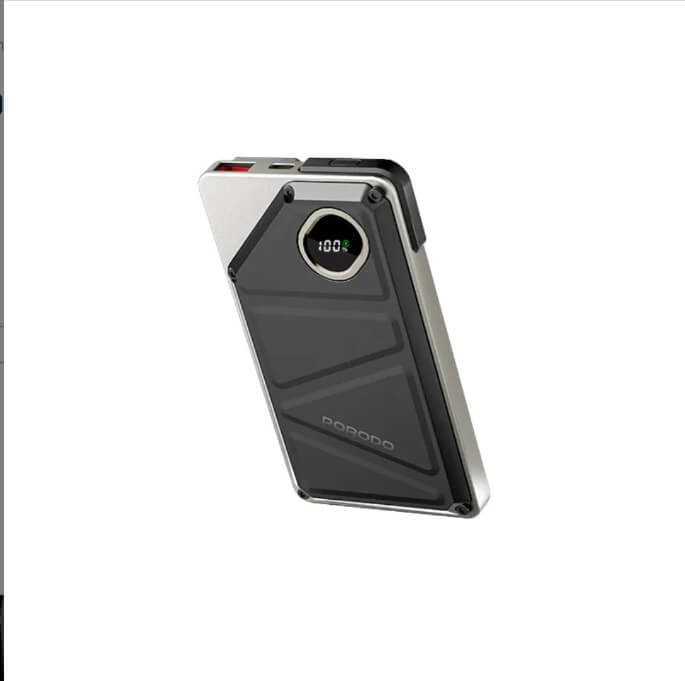 ر.ع.5.90باور بانك بورودو 10000 مللي أمبير في الساعة مدمج بنوع C وحامل – أسود