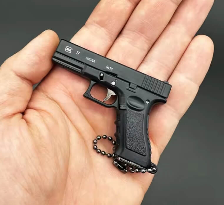 مسدس ميدالية حديد بتصميم المسدس الحقيقي قابل للتفكيك سلاح لعبة شكل سلاسل مفاتيح مع تصميم معدني وقابل للفصل، مسدس جلوك 1:3 Min